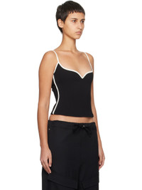 Recycled polyester crepe camisole. Sateen trim and darts throughout. · Sweetheart neck · Fixed spaghetti straps · Zip closure at back Supplier color: Black/White Body: 100% recycled polyester. Trim: 80% triacetate, 20% polyester. Made in New Zealand 241438F111000