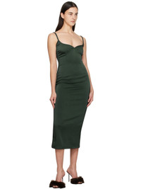 Stretch polyester- and acetate-blend bonded jersey midi dress. · Sweetheart neck · Darts at front · Pinched side seams · Fixed spaghetti straps · Zip closure at back · Central vent at back hem Supplier color: Bottle 54% polyester, 38% acetate, 8% spandex. Made in New Zealand 251438F054002
