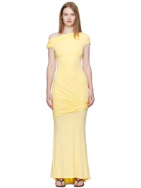 Stretch viscose jersey maxi dress. · Draping throughout · Single-shoulder construction · Godet panel at back hem Supplier color: Sunflower 93% viscose, 7% spandex. Made in New Zealand 252438F054007