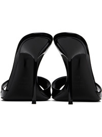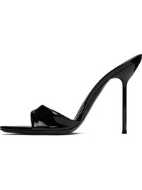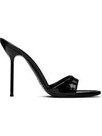 Patent leather mules in black. · Open toe · Logo stamp at padded leather footbed · Lacquered stiletto heel with rubber injection · Polished leather sole · Heel: H4" Supplier color: Black Leather. Made in Italy 252616F125002