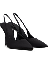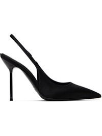 Satin heels. · Pointed toe · Partially elasticized slingback strap · Lacquered stiletto heel with rubber injection · Leather sole · Heel: H4" Supplier color: Black Upper: textile. Sole: leather. Made in Italy 252616F122014