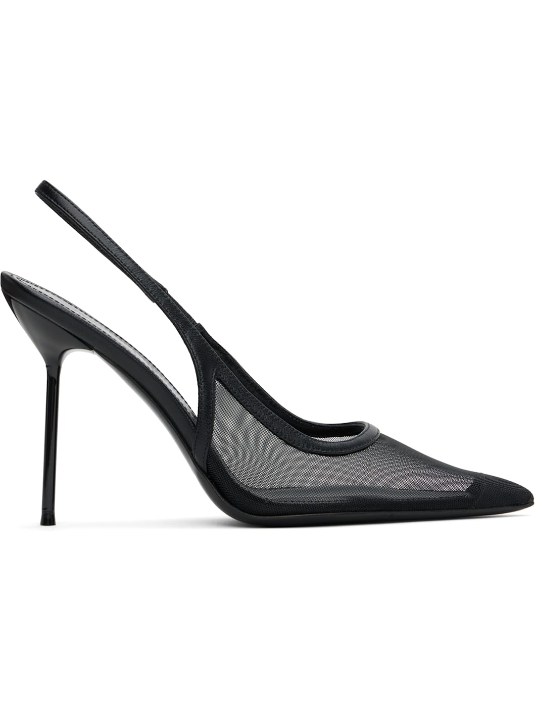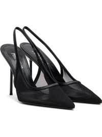 Sheer mesh heels in black. · Pointed toe · Elasticized slingback strap · Logo stamp at buffed leather footbed · Lacquered stiletto heel with rubber injection · Polished leather sole · Heel: H4.25" Supplier color: Black Upper: textile, leather. Sole: leather. Made in Italy 242616F122003