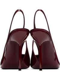 Patent leather heels in burgundy. · Pointed toe · Partially elasticized slingback strap · Logo stamp at padded leather footbed · Lacquered stiletto heel with rubber injection · Polished leather sole · Heel: H4" Supplier color: Rouge noir Leather. Made in Italy 252616F122001