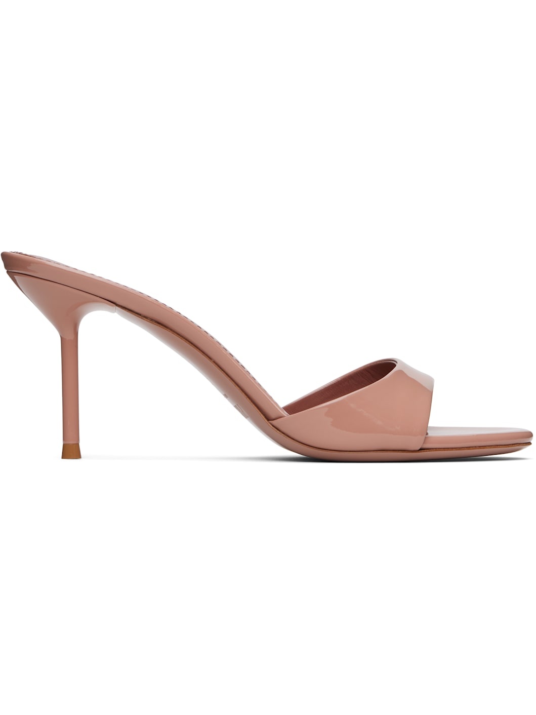 Patent leather mules in pink. · Open toe · Logo stamp at padded leather footbed · Lacquered stiletto heel with rubber injection · Polished leather sole · Heel: H2.75" Supplier color: Dark blush Leather. Made in Italy 252616F125007