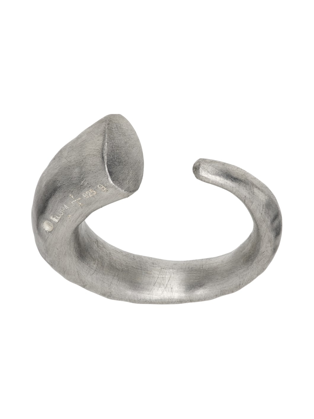Handcrafted open band ring in sterling silver. Hallmarking at band base. Supplier color: Matte silver