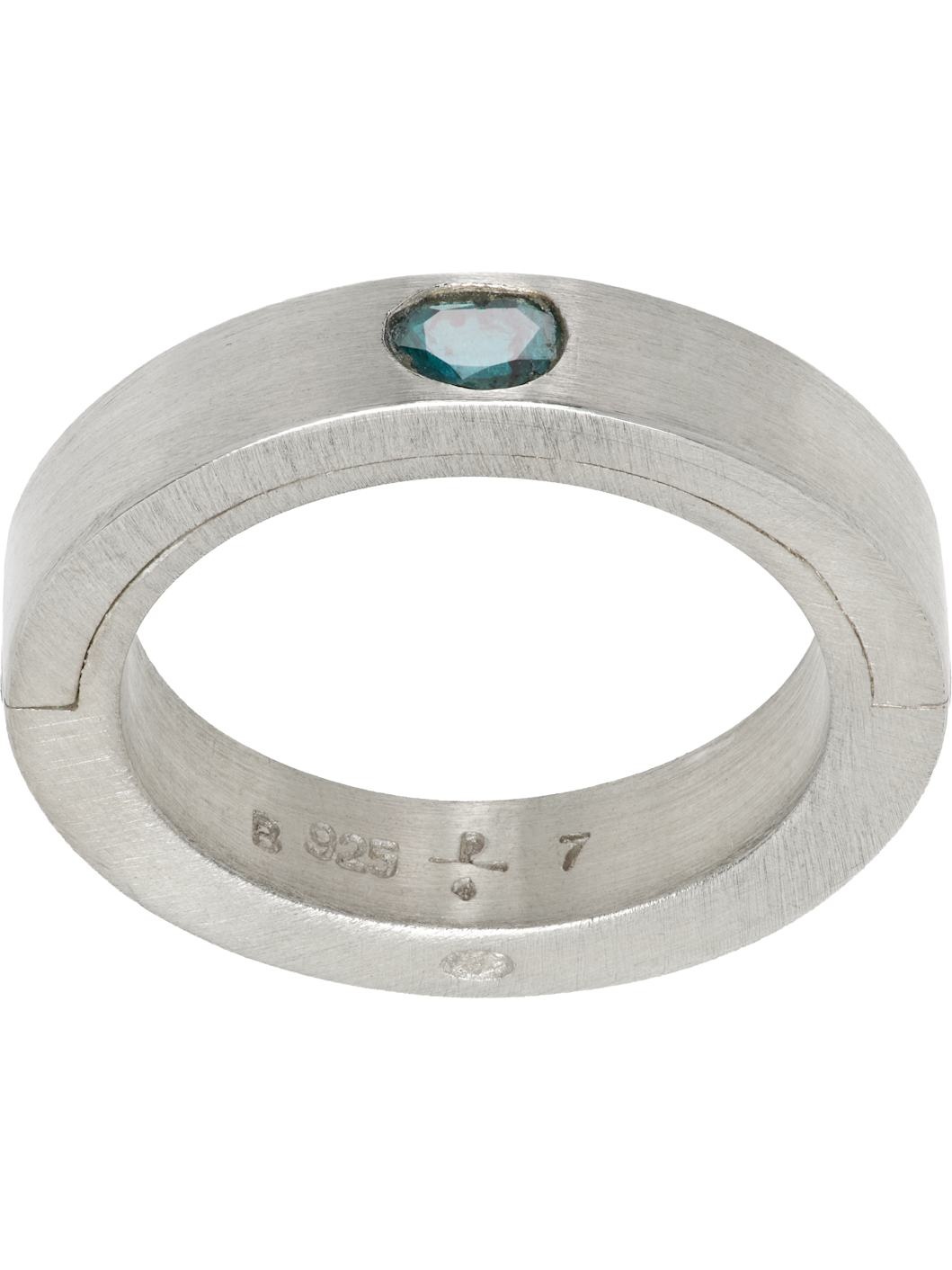 Band ring in sterling silver. Bezel-set blue 0.1 ct diamond at face. Supplier color: Matte sterling silver 925 sterling silver, diamond. Made in Indonesia 252236M147010