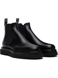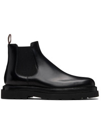 Ankle-high buffed leather Chelsea boots. · Elasticized gusset at sides · Webbing pull-loop at heel collar · Buffed leather lining · Foam rubber midsole · Treaded leather sole Supplier color: Black Upper: leather. Sole: rubber. Made in Italy 252260M223007