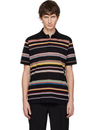 Black 'Signature Stripe' Cotton-Piqué Polo