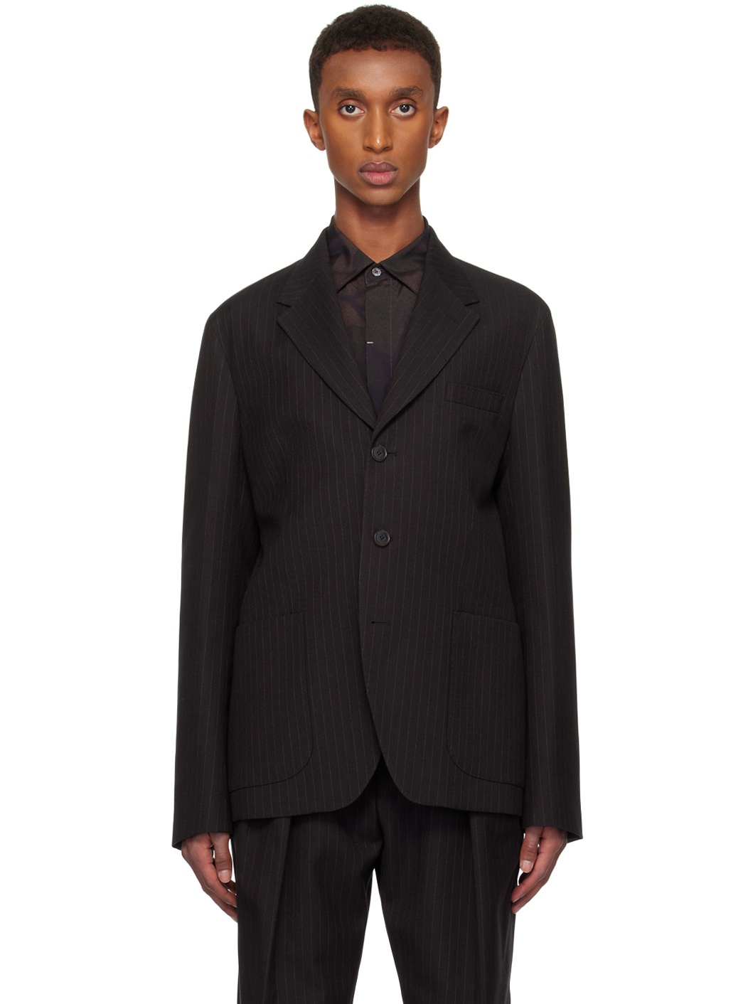Wool- and cotton-blend twill blazer. Pinstripe pattern throughout. · Notched lapel · Three-button closure · Welt pocket at front · Patch pockets at front · Four-button surgeon's cuffs · Vent at back hem · Welt pockets at interior · Partially lined Supplier color: Black Body: 55% wool, 45% cotton. Lining: 100% viscose. Made in Italy 242260M195004