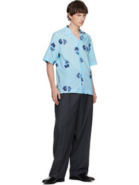 Light Blue Cotton-Lyocell 'Tri Flower' Short-Sleeve Shirt