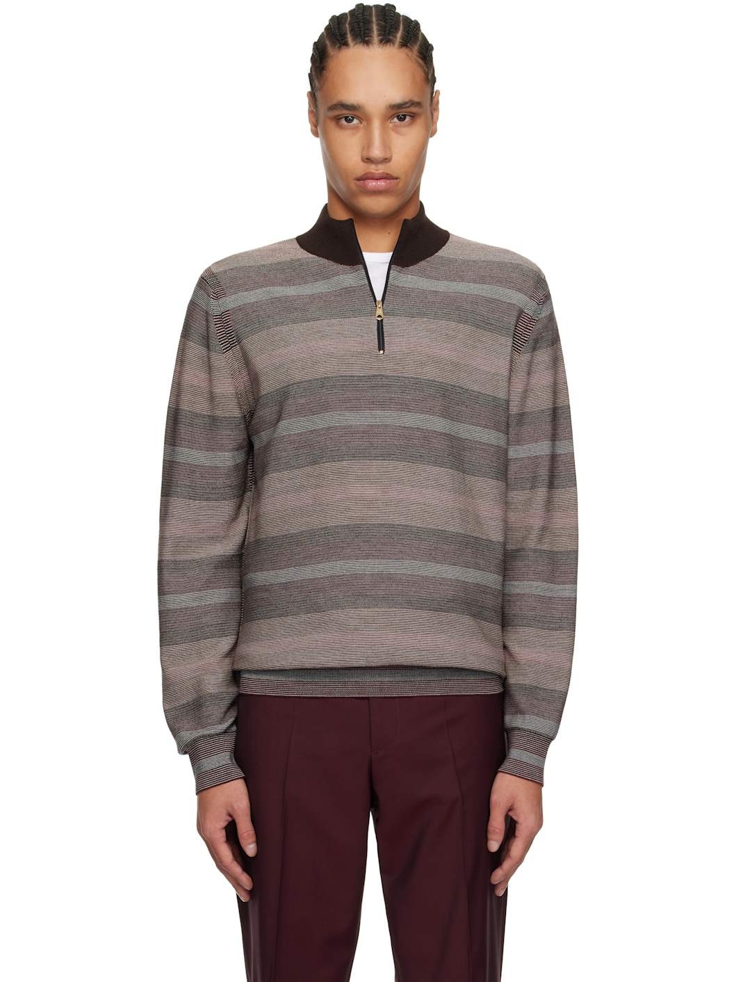 Reverse knit cotton- and wool-blend sweater. Jacquard stripes throughout. · Rib-knit mock neck, hem, and cuffs · Half-zip closure Supplier color: Multicolor 55% cotton, 45% wool. Made in Turkey 251260M202000