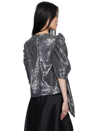 Sequinned cotton-blend mesh blouse. · Boat neck · Integrated shawl-style overlay at puff sleeves · Concealed zip closure at back · Partial satin lining Available exclusively at SSENSE. Supplier color: Black Sequin Body: 49% cotton, 51% polyester. Lining: 100% polyester. Made in Spain 251427F054008