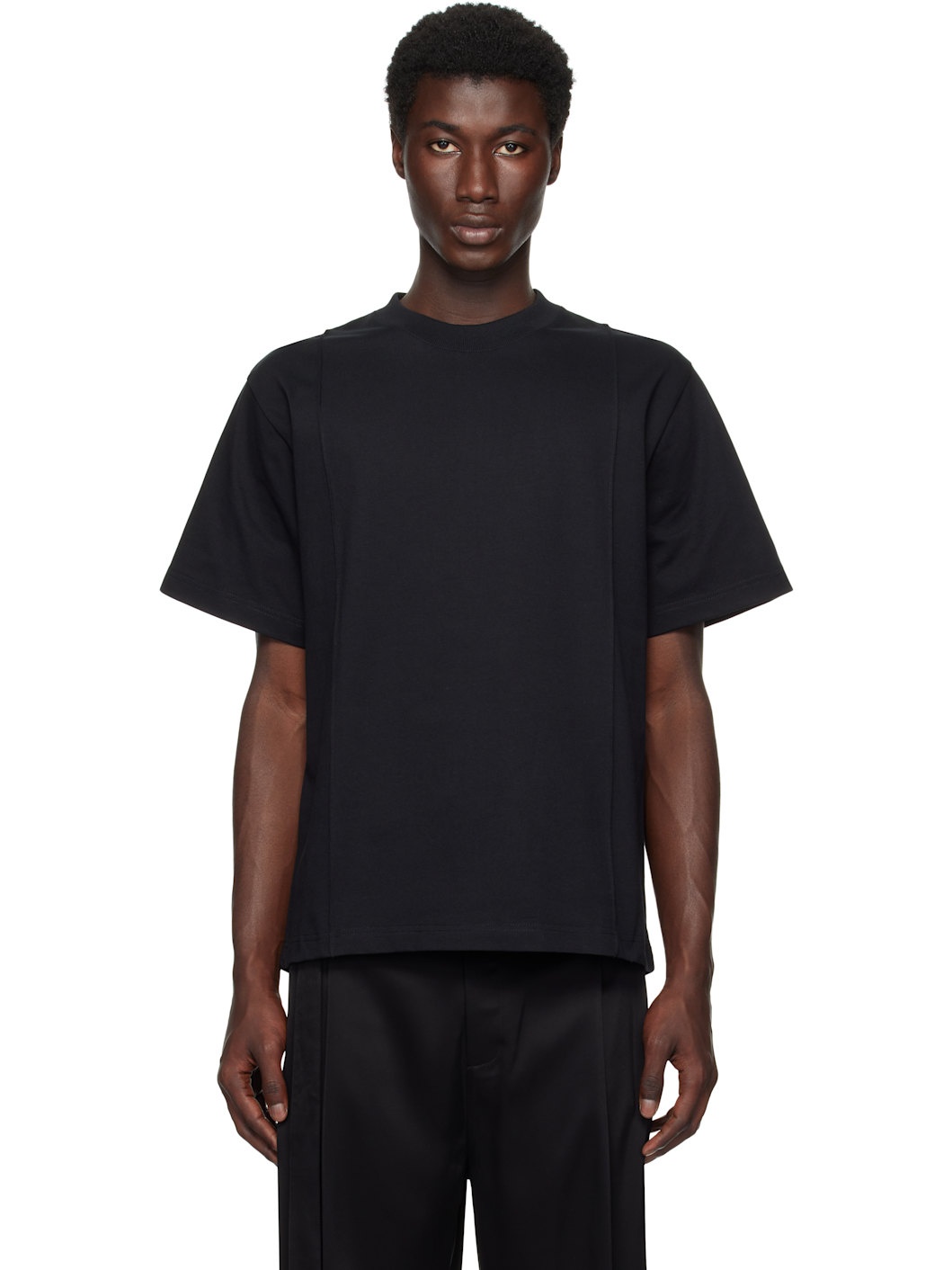 Cotton jersey T-shirt. · Rib-knit crewneck · Pinched seams at front and back · Logo embroidered at back collar Supplier color: Black 100% cotton. Made in Portugal 252462M213000