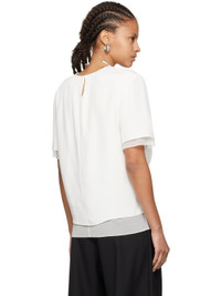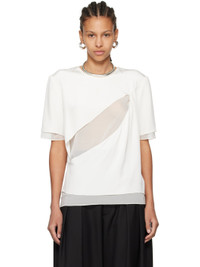 Silk satin and semi-sheer stretch silk chiffon T-shirt. · Layered construction · Crewneck · Cutout and draping at front · Hook-eye fastening at back collar Supplier color: White Body 1: 100% silk. Body 2: 92% silk, 8% elastane. Made in United States 242462F110001
