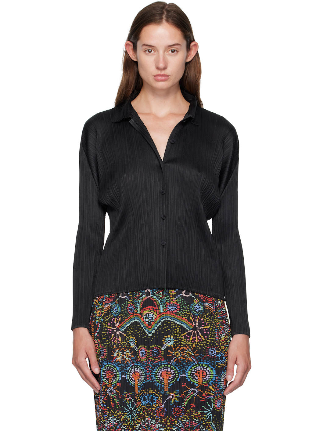 Garment-pleated tricot blouse. · Spread collar · Button closure Supplier color: Black 100% polyester. Made in Japan 251941F107003