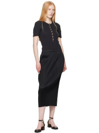 Garment-pleated polyester tricot midi skirt. · Elasticized waistband · Two-pocket styling Supplier color: Black 100% polyester. Made in Japan 251941F092016