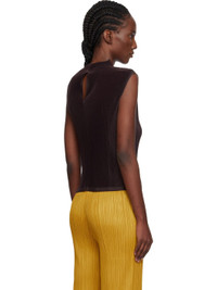 Garment-pleated tricot tank top. · Mock neck · Central seam at front and back · Keyhole at back collar Supplier color: Dark brown 100% polyester. Made in Japan 252941F111021