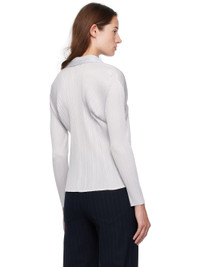 Garment-pleated tricot blouse. · Spread collar · Button closure Supplier color: Light gray 100% polyester. Made in Japan 251941F107004