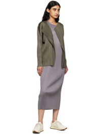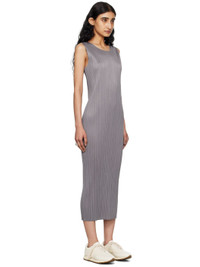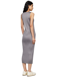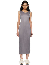 Garment-pleated polyester tricot dress. · Front-to-back construction · Scoop neck Supplier color: Gray 100% polyester. Made in Japan 242941F054015