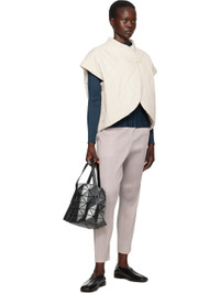 Straight-leg garment-pleated polyester tricot trousers. · Elasticized waistband · Two-pocket styling Supplier color: Greige 100% polyester. Made in Japan 251941F087011
