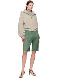 Garment-pleated tricot shorts. · Elasticized waistband · Two-pocket styling Supplier color: Moss green 100% polyester. Made in Japan 252941F088000