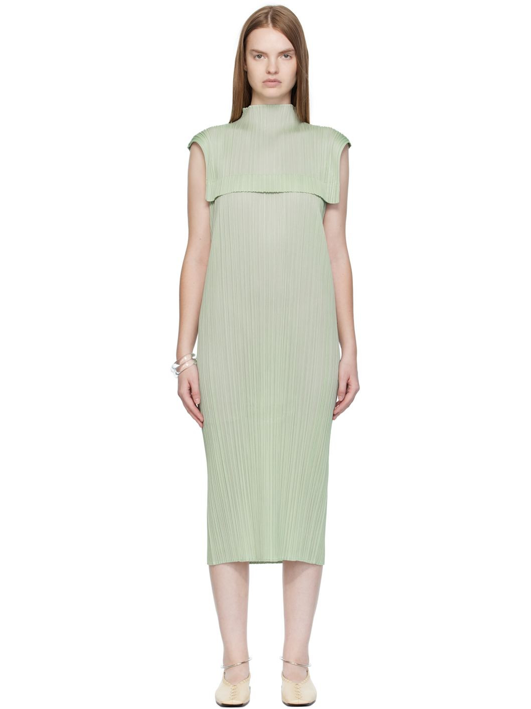 Garment-pleated tricot maxi dress. · Mock neck · Fixed panel at chest Supplier color: Pastel green 100% polyester. Made in Japan 252941F055009