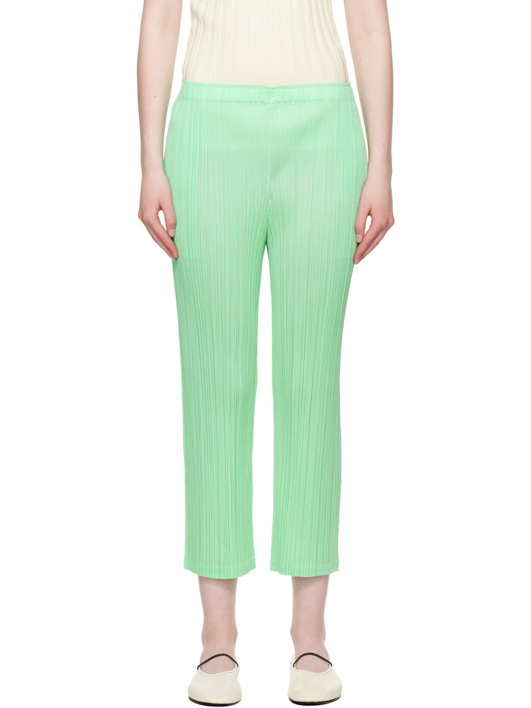 Straight-leg garment-pleated polyester tricot trousers. · Elasticized waistband · Two-pocket styling · Cropped leg Supplier color: Mint green 100% polyester. Made in Japan 252941F087005