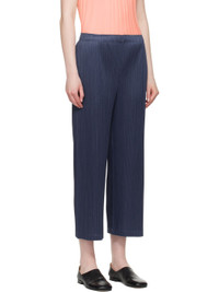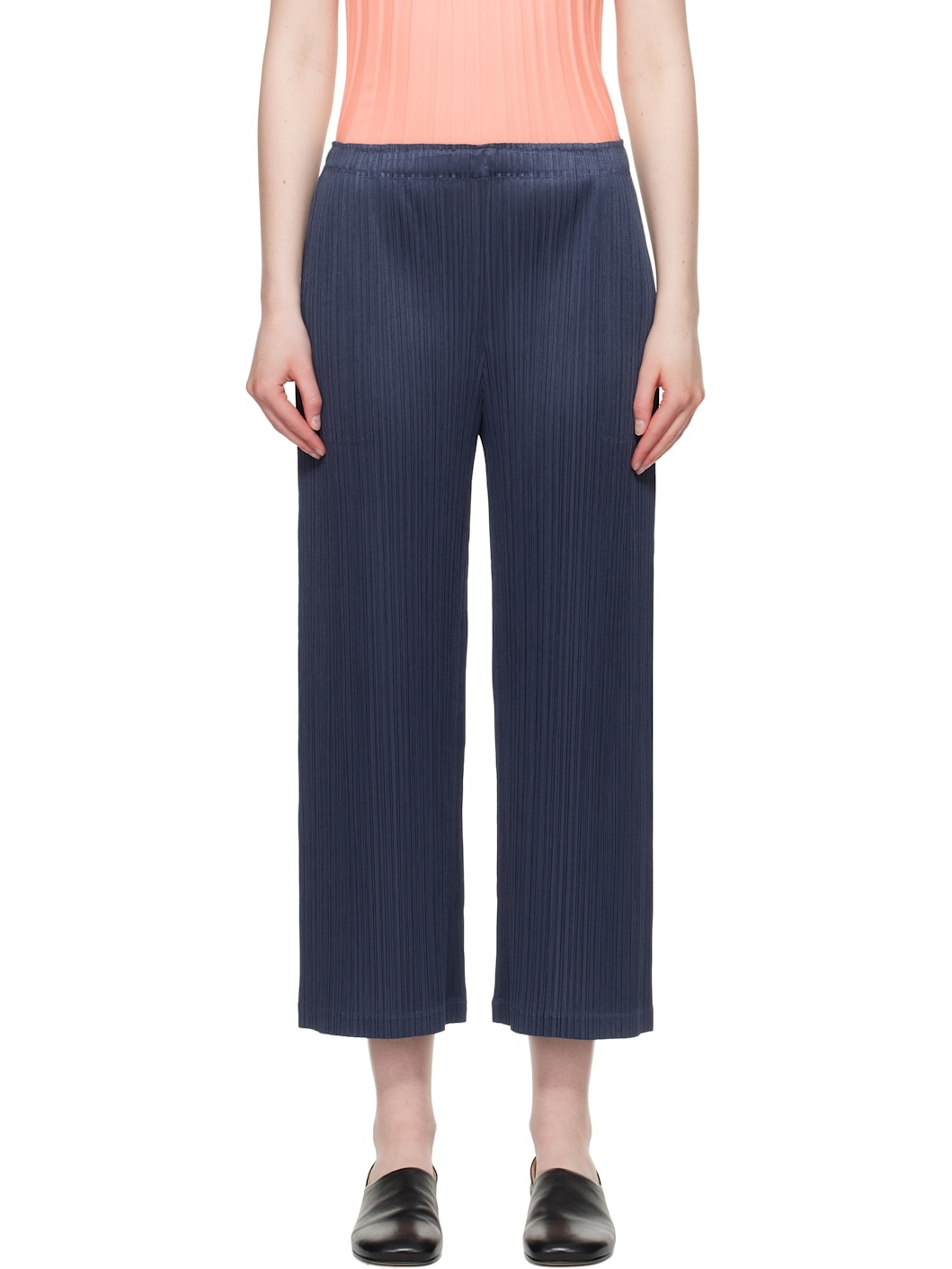 Straight-leg garment-pleated polyester tricot trousers. · Elasticized waistband · Two-pocket styling Supplier color: Navy blue 100% polyester. Made in Japan 252941F087007