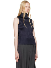 Garment-pleated polyester tricot top. Mock neck. Supplier color: Navy 100% polyester. Made in Japan 252941F099002