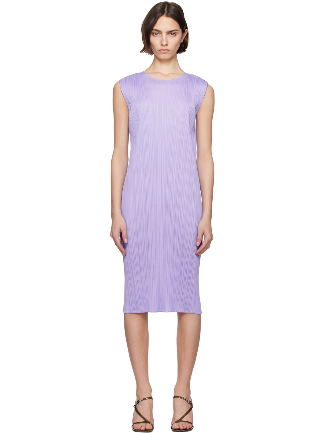 Garment-pleated polyester tricot midi dress. Round neck. Supplier color: Lilac 100% polyester. Made in Japan 252941F054009