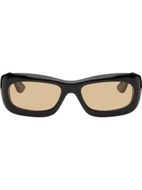 Handcrafted rectangular cellulose acetate-frame sunglasses. · Brown lenses · 100% UVA/UVB protection · Integrated nose pads · Signature rivets at temples · Includes pouch · Size: 56.19 137 Part of the Bast collection. Supplier color: Black/Amber Acetate. Made in Japan 252458M134020