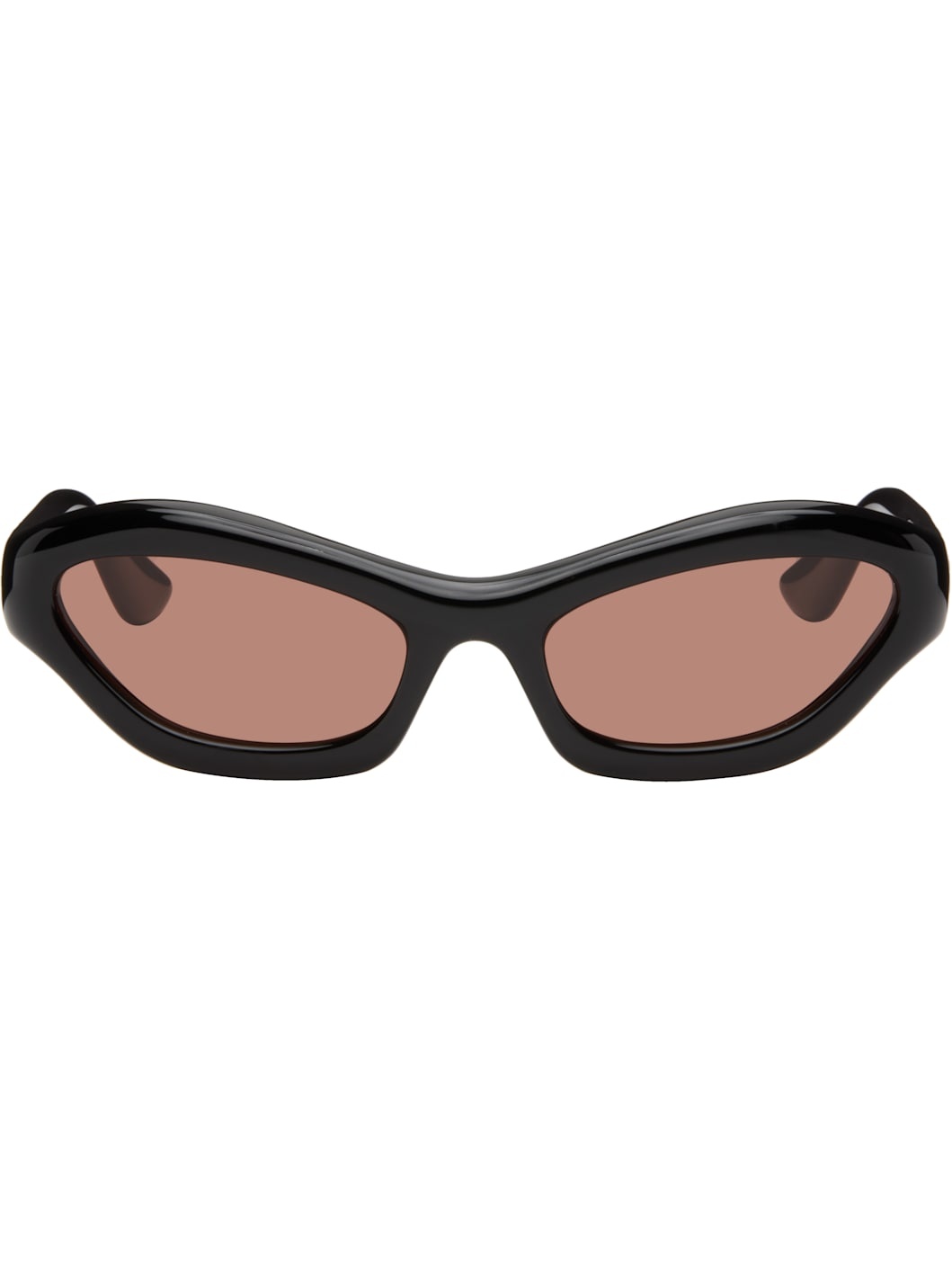 Handcrafted cat-eye cellulose acetate-frame sunglasses. · Orange lenses · 100% UVA/UVB protection · Integrated nose pads · Signature rivets at temples · Includes pouch · Size: 57.20 137 Part of the Bast collection. Supplier color: Black/Tobacco Acetate. Made in Japan 252458F005007