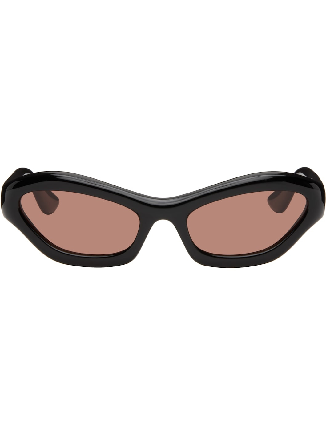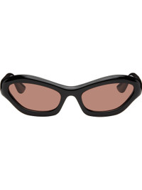 Handcrafted cat-eye cellulose acetate-frame sunglasses. · Orange lenses · 100% UVA/UVB protection · Integrated nose pads · Signature rivets at temples · Includes pouch · Size: 57.20 137 Part of the Bast collection. Supplier color: Black/Tobacco Acetate. Made in Japan 252458M134009