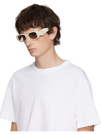 Rectangular acetate-frame sunglasses. · Brown lenses · 100% UVA/UVB protection, category 2 · Logo etched at lens · Integrated nose pads · Logo stamp at temples · Includes case · Size: 49.0145 Supplier color: White milk/Light brown Acetate. Made in Italy 252208M134029