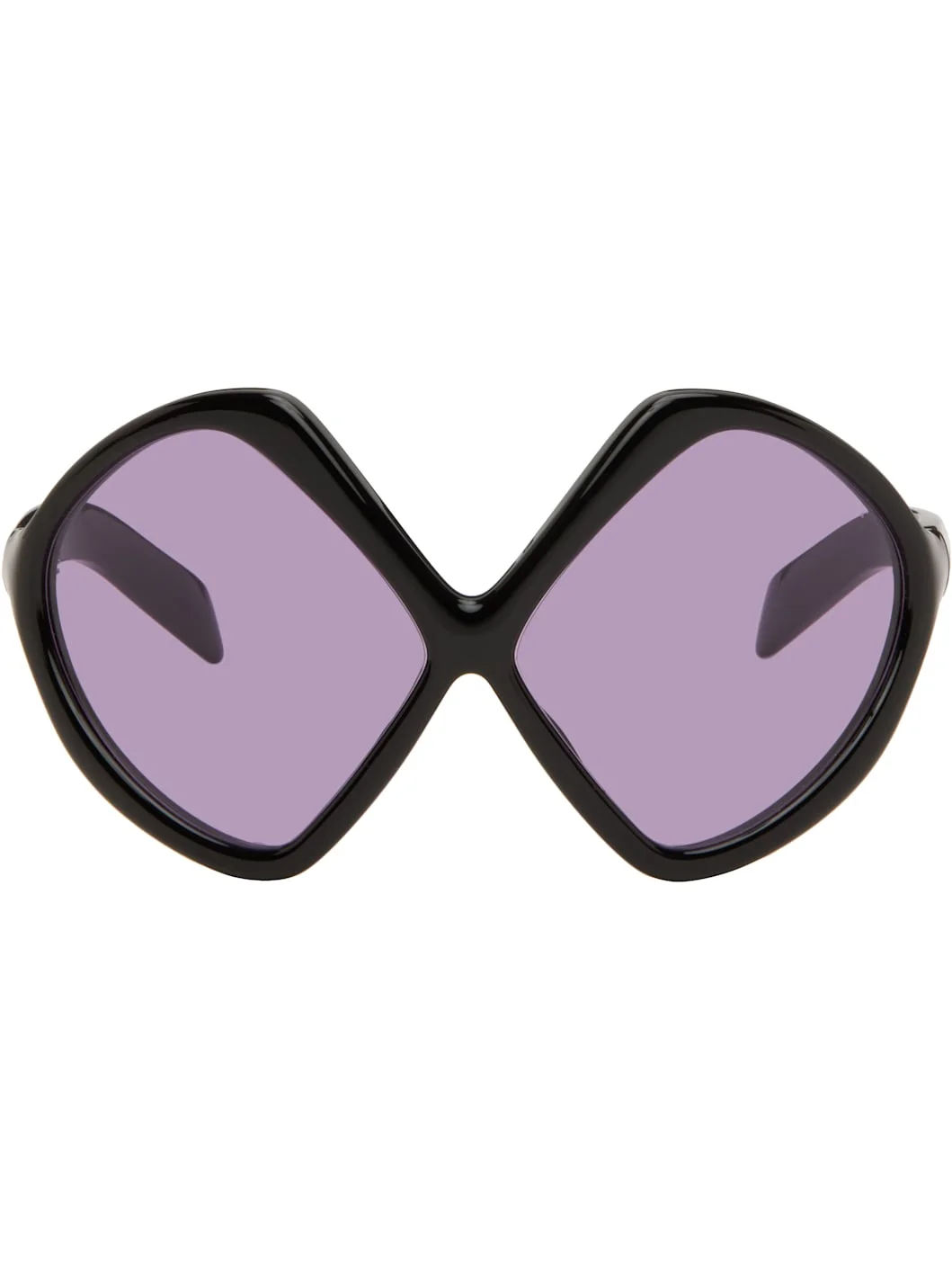 Shield-style acetate-frame sunglasses. · Purple lenses · 100% UVA/UVB protection, category 2 · Integrated nose pads · Logo stamp at temples · Includes pouch · Size: 68.12 125 Supplier color: Black/Purple Acetate. Made in Italy 252208F005007