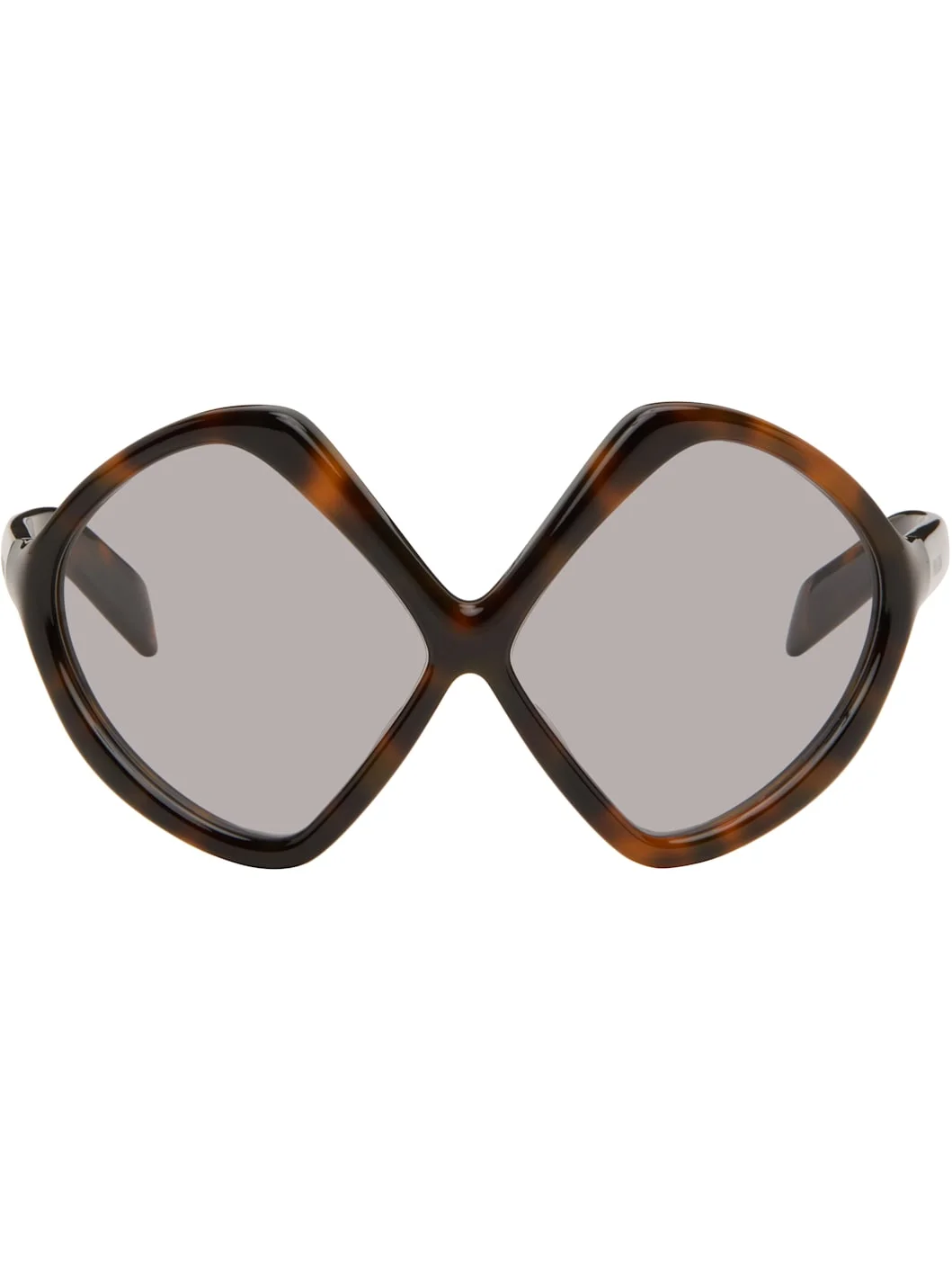 Rectangular tortoiseshell acetate-frame sunglasses. · Gray lenses · Etched logo at lens · Integrated nose pads · Logo embossed at temples · Includes pouch · Size: 68.12 125 Supplier color: Juniper tortoise/Grey Acetate. Made in Italy 252208F005008