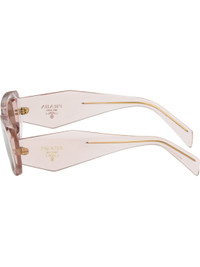 Rectangular transparent acetate-frame sunglasses. · Pink lenses · 100% UVA/UVB protection, category 2 · Logo etched at lens · Integrated nose pads · Logo stamp at temples · Core wires · Includes case · Size: 49.20 145 Supplier color: Pink Acetate. Made in Italy 261208F005044