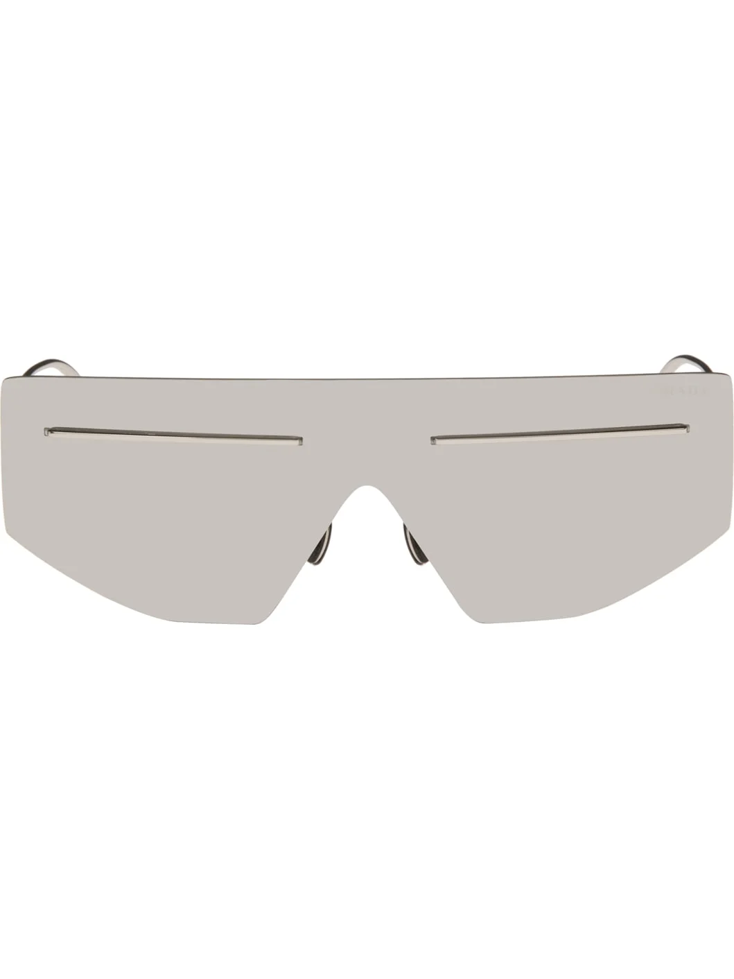 Shield-style rimless metal-frame sunglasses. · Logo etched at silver-tone lens · Adjustable rubber nose pads · Logo stamp at temple tips · Includes satin pouch and case · Size: 145 Supplier color: Silver Metal. Made in Italy 252208M134007