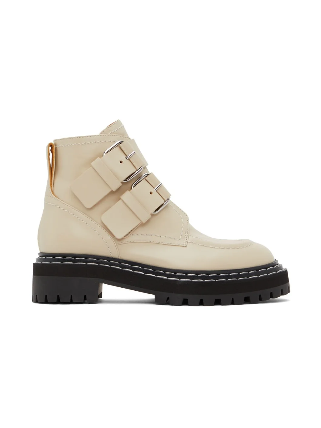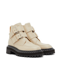 Beige Lug Sole Buckle Boots