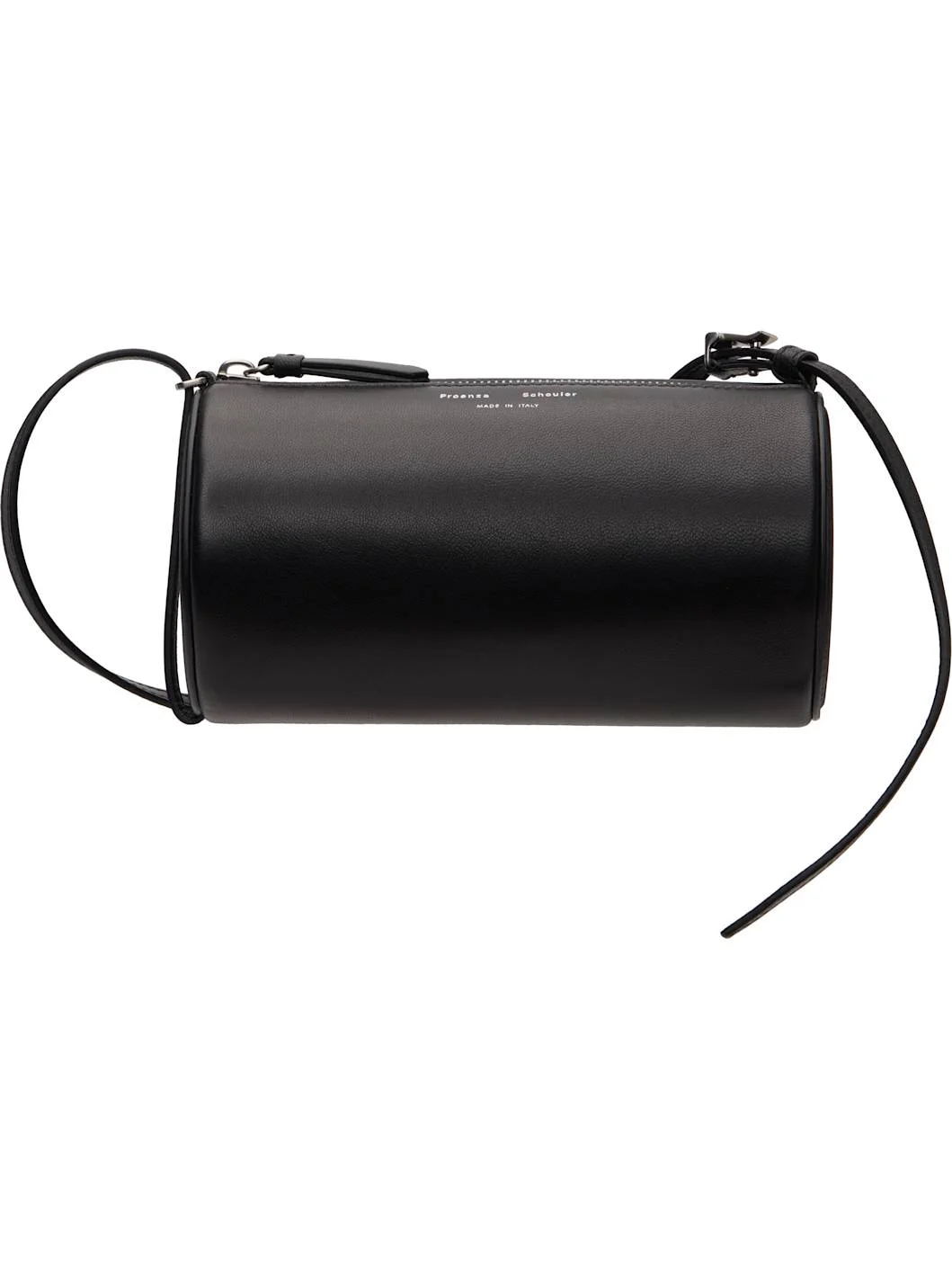 Buffed lambskin shoulder bag. · Adjustable and semi-detachable crossbody strap · Logo stamped at face · Zip closure · Buffed lambskin lining · Silver-toned hardware · H3.75" x W7.25" x D3.75" Supplier color: Black Lambskin. Made in Italy 252288F048009
