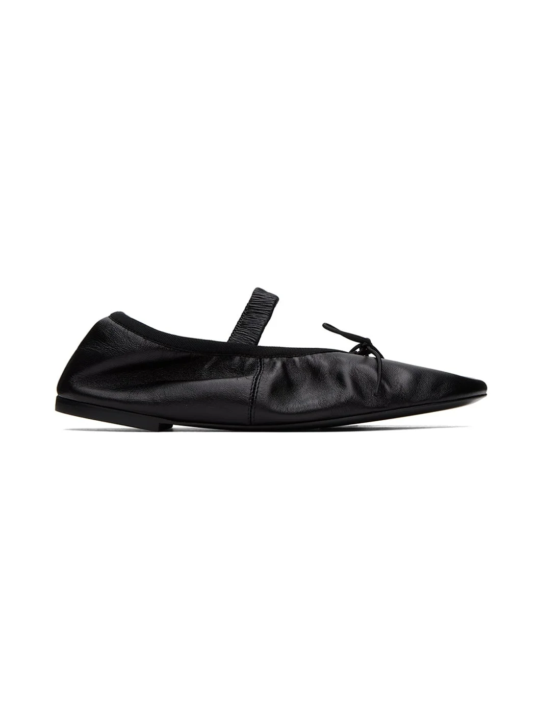 Grained leather Mary Jane-style ballerina flats in black. · Bow accent and elasticized strap at vamp · Elasticized trim at collar · Grained leather and suede lining · Rubber sole Supplier color: Black