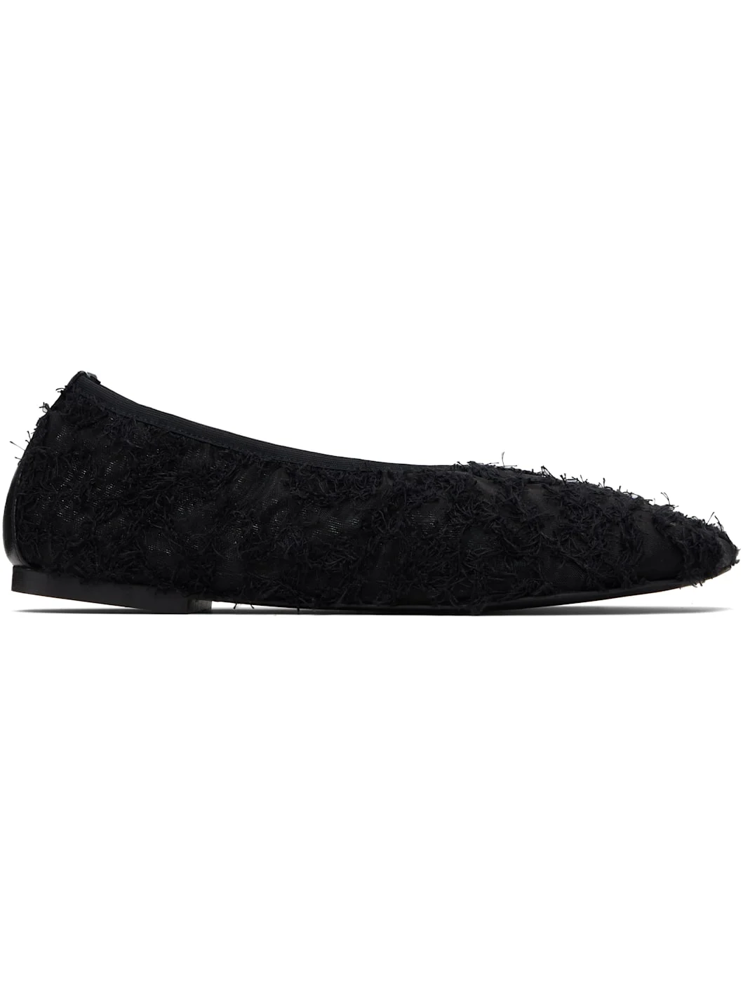 Sheer mesh ballerina flats. · Loose thread detailing throughout · Square toe · Buffed leather trim at heel counter · Stacked rubber heel · Polished calfskin sole Supplier color: Black Upper: textile. Sole: calfskin. Made in Italy 261288F118003