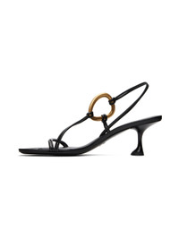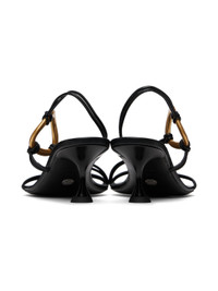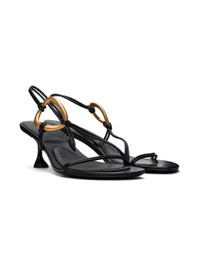 Buffed lambskin heeled sandals in black. · Open toe · Criss-crossing straps at vamp · Graphic hardware at vamp · Slingback strap · Logo stamp at padded footbed · Grained leather lining · Spool heel with rubber injection · Patent leather sole · Heel: H2.75" Supplier color: Black Upper: lambskin. Sole: leather. Made in Italy 242288F125003