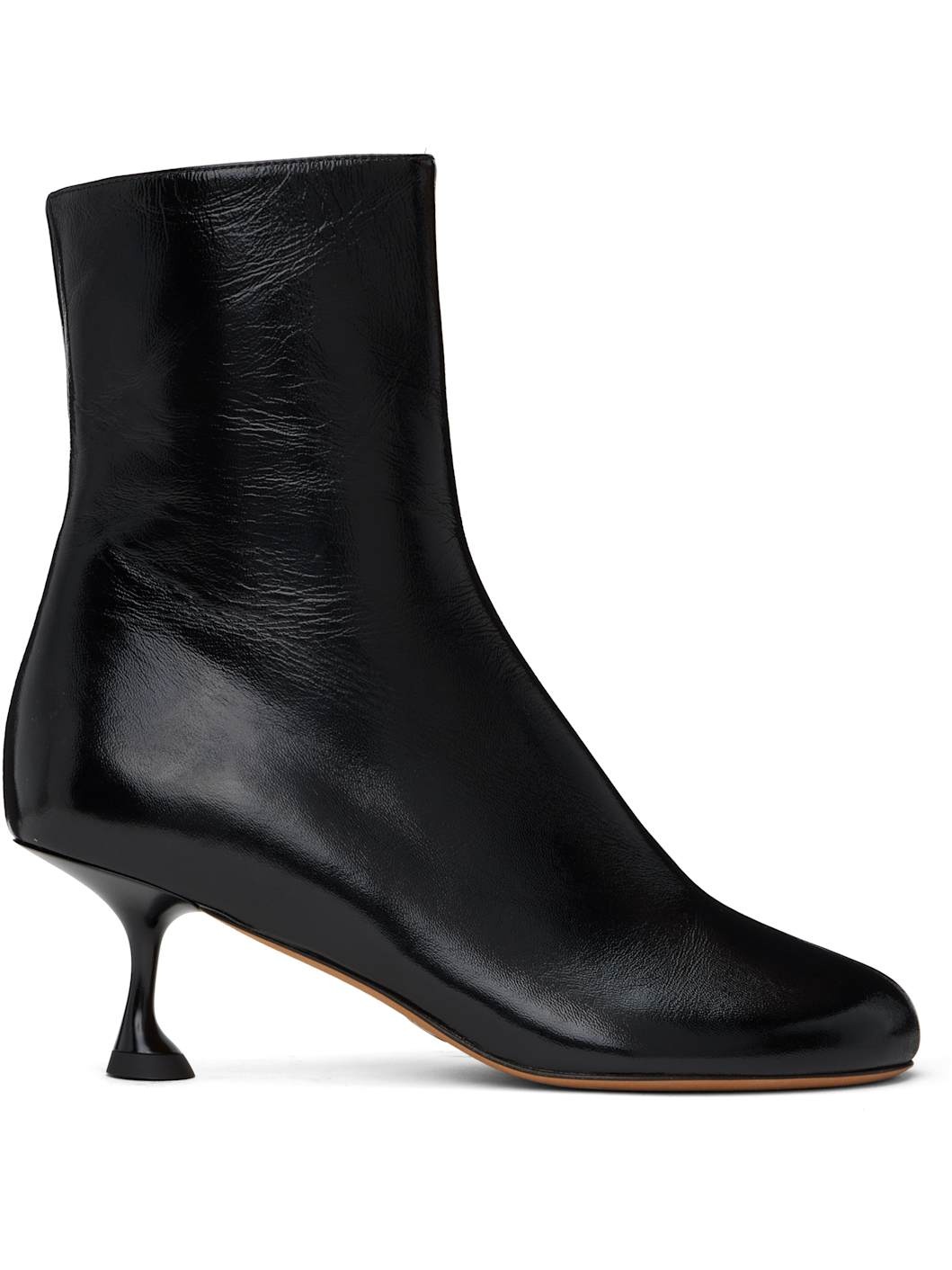Ankle-high crackled nappa lambskin boots in black. · Zip closure at inner side · Grained leather lining · Covered spool heel with rubber injection · Suede sole · Heel: H2.25" Supplier color: Black Upper: lambskin. Sole: leather, rubber. Made in Italy 242288F113008