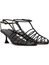 Black Tee Cage Heeled Sandals