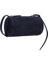Lambskin suede shoulder bag. · Adjustable and semi-detachable crossbody strap · Logo embossed at face · Zip closure · Buffed lambskin lining · Silver-toned hardware · H3.75" x W7.25" x D3.75" Supplier color: Deep navy Lambskin. Made in Italy 252288F048008