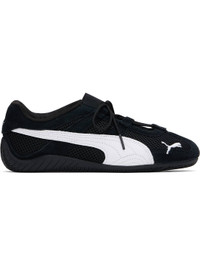 Low-top mesh and suede sneakers in black. · Cutout and lace-up closure at vamp · Elasticized strap at padded collar · Quilted Formstrip at sides · Logo embroidered at outer side and heel tab · Cushioned OrthoLite® footbed · Mesh lining · Treaded rubber sole Supplier color: PUMA black/PUMA white Upper: leather, textile. Sole: rubber. Made in Viet Nam 252010F128015