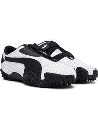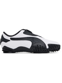 Low-top grained leather sneakers in white. · Perforations throughout · Logo patch at offset velcro strap · Logo patch and elasticized gusset at tongue · Padded tongue and collar · Quilted Formstrip at outer side · Rubberized logo patch at heel counter · Cushioned OrthoLite® footbed · Jersey lining · Spikes at rubber midsole · Treaded rubber sole Supplier color: PUMA white/PUMA black Upper: leather. Sole: rubber. Made in Cambodia 251010F128024