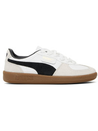 Low-top LWG-certified buffed leather and suede sneakers in white, gray, and black. · Lace-up closure · Logo embossed at tongue and midsole · Padded collar · Formstrip at sides · Logo flag at outer side · Logo stamp at heel tab · Buffed faux-leather lining · Treaded crepe-rubber sole Supplier color: PUMA white/Vapor gray/Gum Upper: leather. Sole: rubber. Made in Viet Nam 251010F128017