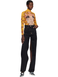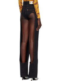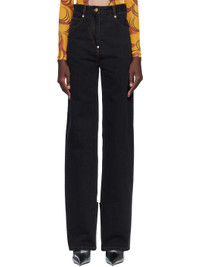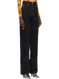 Tapered non-stretch denim jeans. Subtle fading throughout. · High-rise · Belt loops · Five-pocket styling · Zip fly · Logo patch at back waistband · Cutout at back legs · Logo-engraved gold-tone hardware · Contrast stitching in tan Supplier color: Black 100% cotton. Made in South Korea 251252F069028
